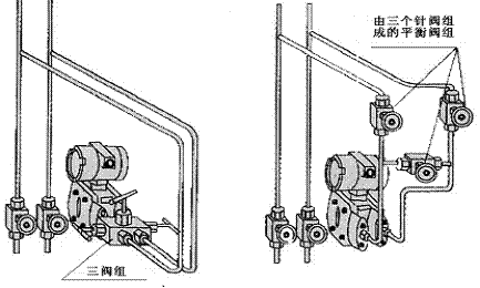 2、防止差壓變送器的正負、壓室過壓請按下圖所示方法與引壓管路連接。