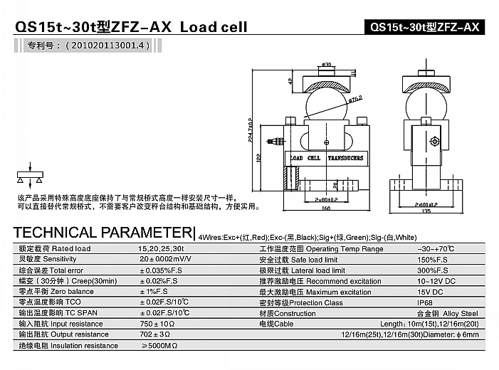 產(chǎn)品名稱:QS15t~30t型ZFZ-AX稱重傳感器