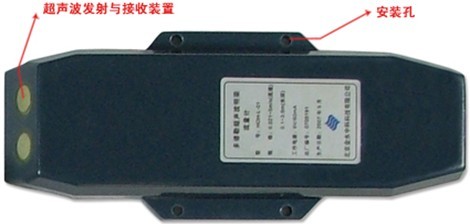探頭前端的兩個圓形裝置為超聲波發射與接收裝置,不得用硬物劃傷或沖撞,在安裝使用時才將其保護罩去掉;底部網狀圓孔內置壓力傳感器,不得用細長硬物去接觸,在安裝使用時才將其保護貼膜揭掉;兩翼的四個孔為安裝孔,用M6不銹鋼螺絲與底座固定。