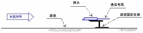 探頭安裝應******水平于渠底(注意不是水平),同時保證與水流方向平行一致,探頭前端(沒有通信電纜的一端)逆水流方向并與水流方向夾角為180度,并且探頭前端不得有阻擋物干擾水流流態,通信電纜線從探頭的下游沿渠底及渠道邊坡引出水面或從安裝支架的鋼管內引出水面。